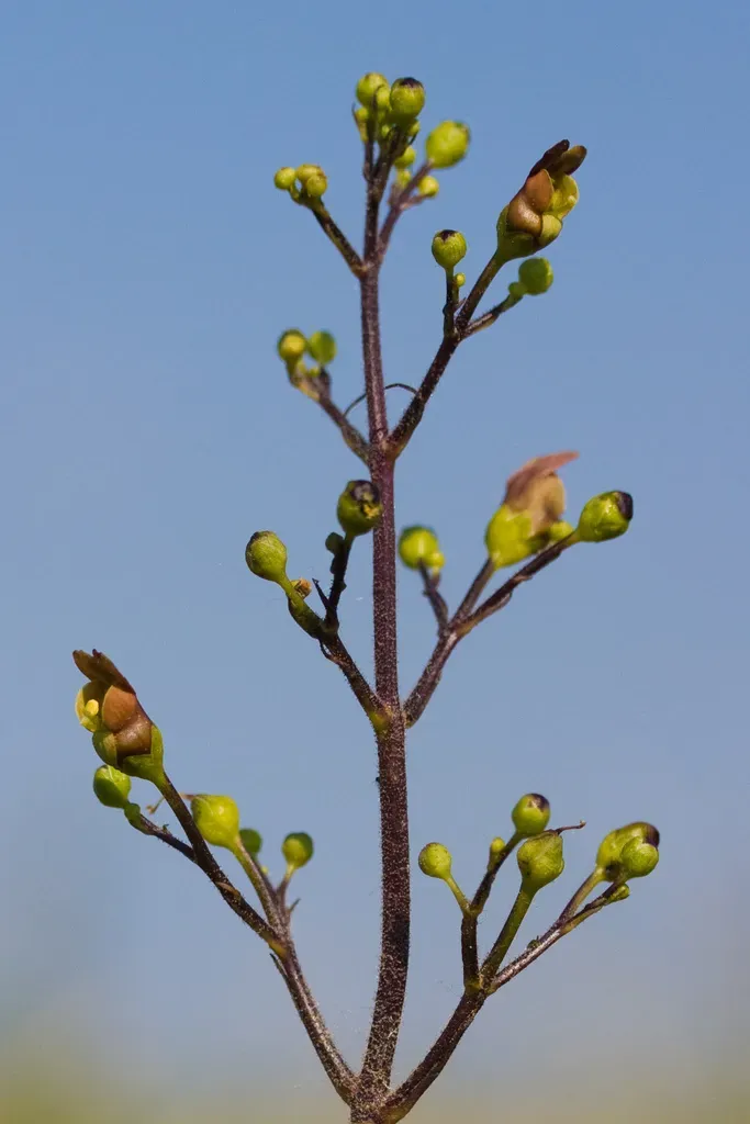 A perennial wildflower known as lanceleaf figwort, notable for its tall stature and small, nectar-rich flowers.