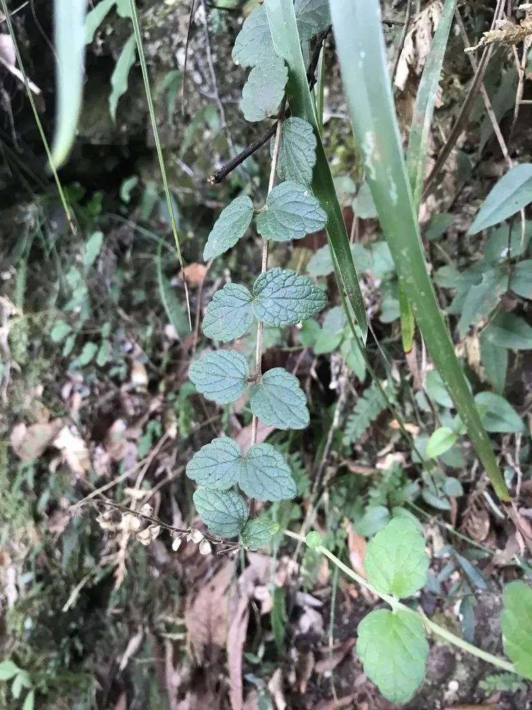 Scutellaria indica is a perennial herbaceous plant known for its small size and snapdragon-like flowers.