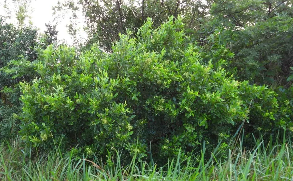 Searsia pallens is a hardy, large, evergreen shrub or small tree known for its attractive ridged bark and bright green trifoliate leaves.