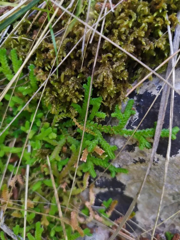 Selaginella denticulata is a small, moss-like spikemoss plant native to Mediterranean and Macaronesian regions, known for its distinctive toothed leaves and ground-hugging growth habit.