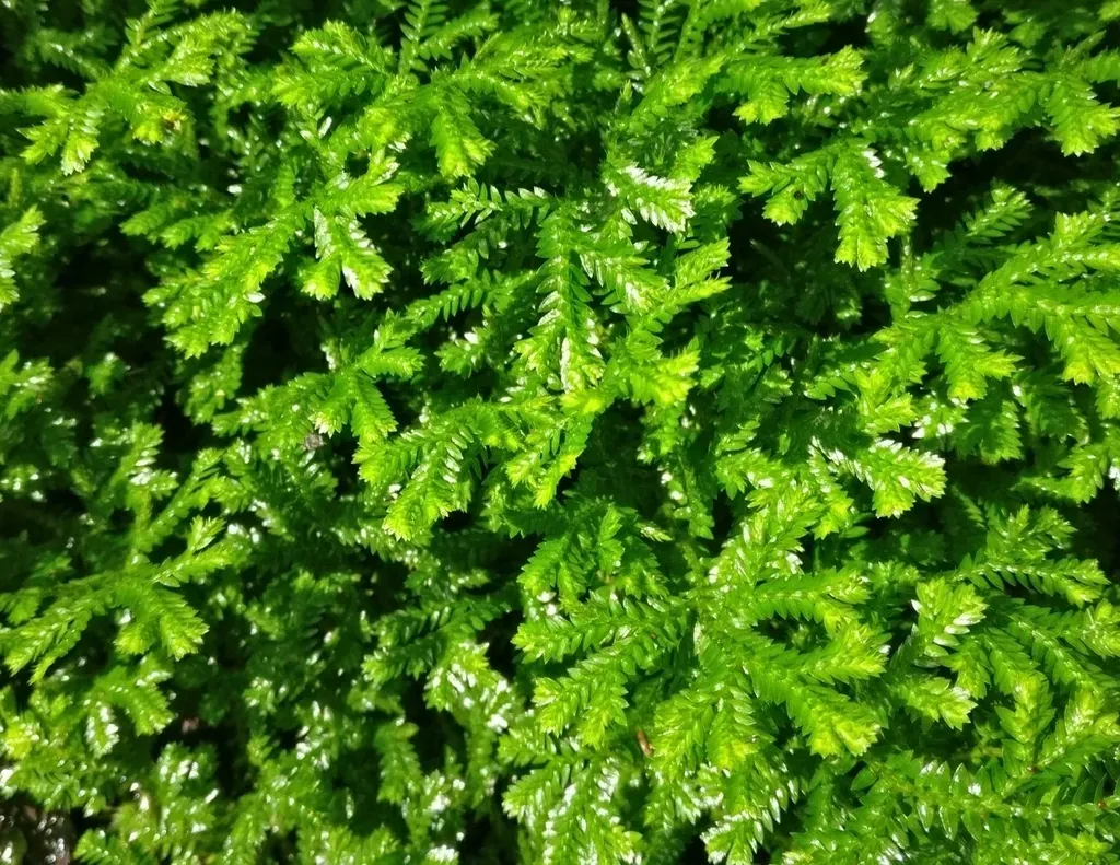Selaginella kraussiana is a low-growing, mat-forming, evergreen spikemoss with delicate, scale-like foliage, often grown for its lush, mossy appearance.