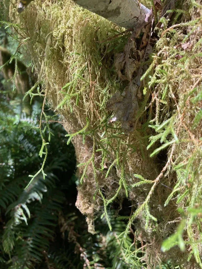 Selaginella oregana is a spikemoss native to the Pacific Coast of western North America, often found in mossy, shady coastal forests where it grows epiphytically on tree branches.