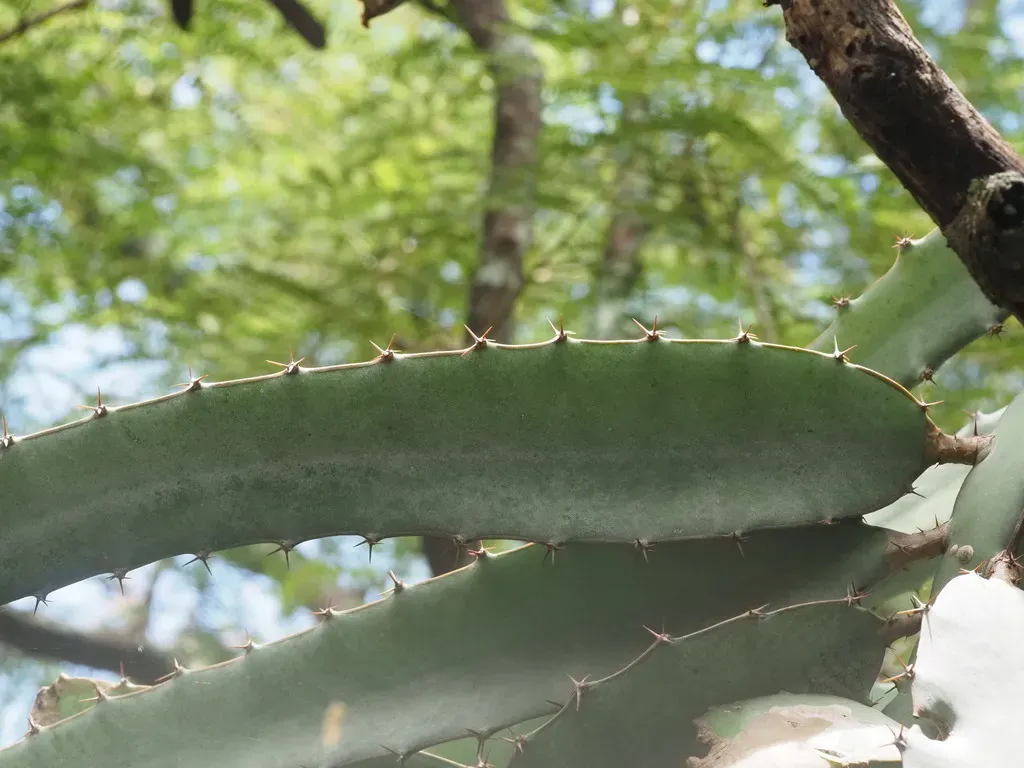Selenicereus ocamponis is a spiny, evergreen climbing cactus with glaucous green, three-angled stems.