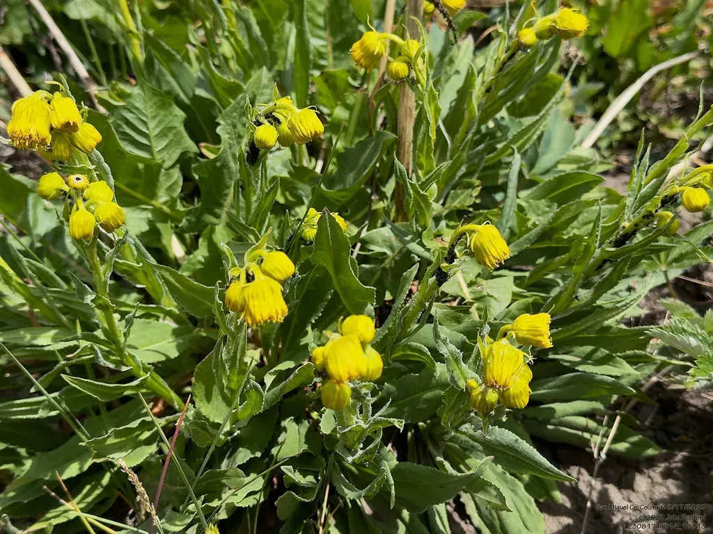 Senecio bigelovii is a perennial herb native to the western United States, recognized for its nodding, rayless yellow flower heads and leafy, erect stems.