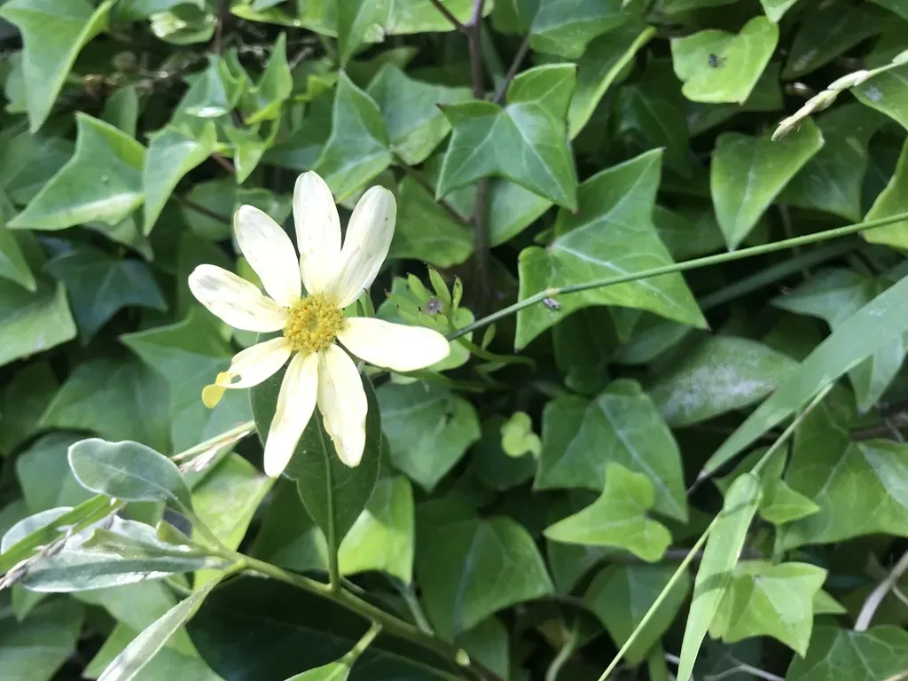Senecio macroglossus is a semi-succulent, evergreen climbing plant with ivy-like leaves and small yellow daisy-like flowers.