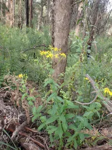Senecio velleioides is a perennial herb or shrub native to Australia, commonly known as forest groundsel.