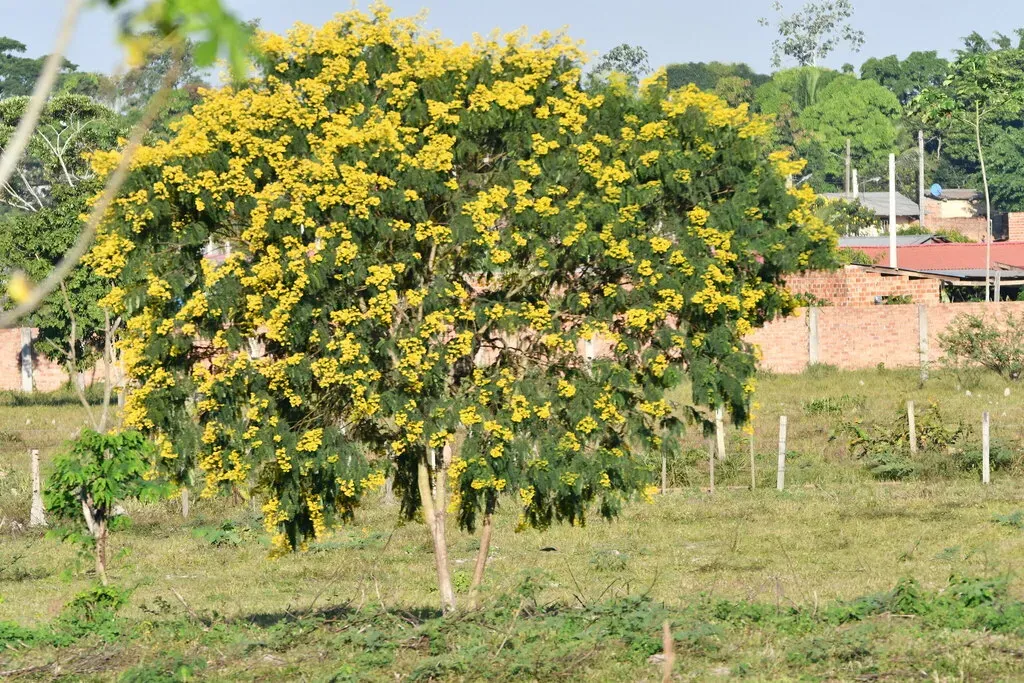 Senna multijuga is a fast-growing shrub or tree native to tropical America, notable for its pinnate leaves and yellow flowers.