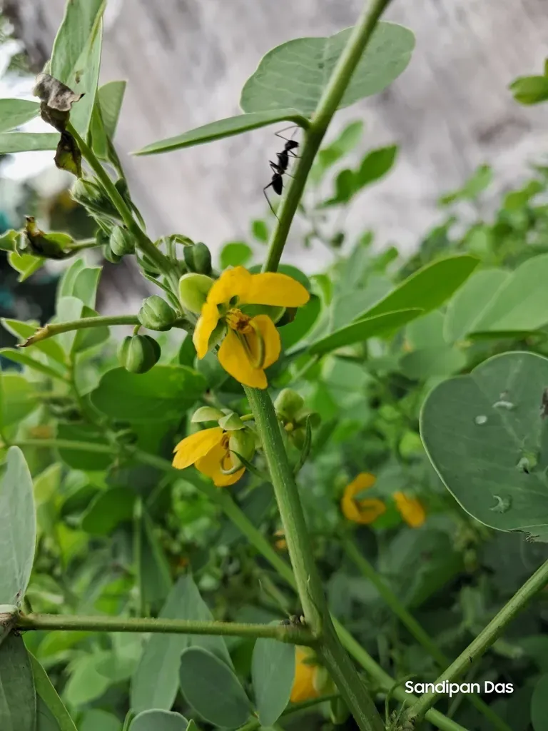 Sickle Senna (Senna Tora) is a annual herb in the Fabaceae family with easy care difficulty. It requires moderate watering and full sun or partial shade light in USDA hardiness zones 9-12. This plant is toxic to cats and dogs — keep it out of reach of pets.