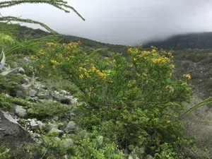 Senna wislizeni is a deciduous shrub native to the southwestern United States and northern Mexico, known for its bright yellow flowers and thorny branches.