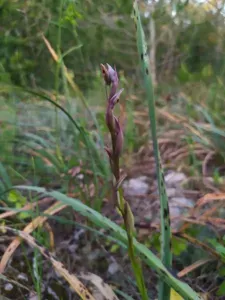 Serapias parviflora is a perennial orchid native to the Mediterranean Basin and parts of Europe, characterized by its small, tongue-shaped flowers.