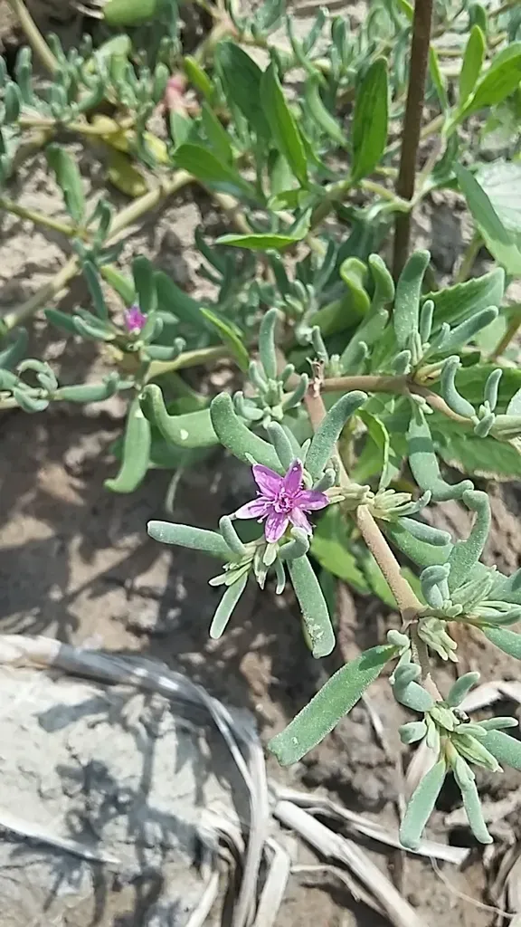 Sesuvium verrucosum is a perennial herb or shrub in the family Aizoaceae, known for its mat-forming growth and tolerance to salty soils.