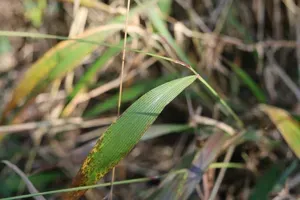 Setaria megaphylla is a robust, perennial tufted grass known for its large size and broad leaves.