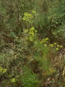 Silaum silaus, known as pepper-saxifrage, is a perennial herbaceous plant in the Apiaceae family, growing up to 1 meter tall with pinnate leaves and small yellow flowers.