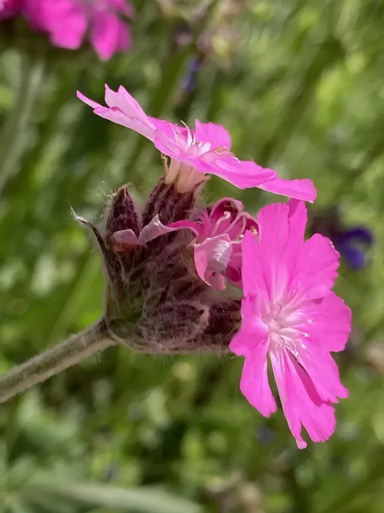 Silene flos-jovis is a mat-forming perennial with hairy grey-green leaves and clusters of notched pink flowers.