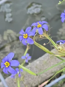 Swordleaf Blue-eyed-grass (Sisyrinchium Ensigerum) is a perennial herb in the Iridaceae family with moderate care difficulty. It requires moderate watering and full sun or partial shade light in USDA hardiness zones 6-9. This plant is safe for cats and dogs.