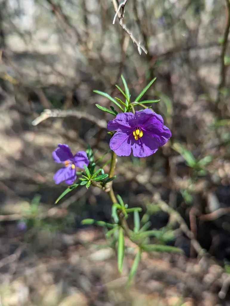 Solanum linearifolium is an unarmed, erect, evergreen shrub growing up to 4 metres tall, native to Australia.