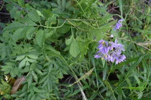 Solanum seaforthianum is a fast-growing, evergreen woody vine native to tropical South America, known for its aggressive climbing habit and ornamental purple flowers.