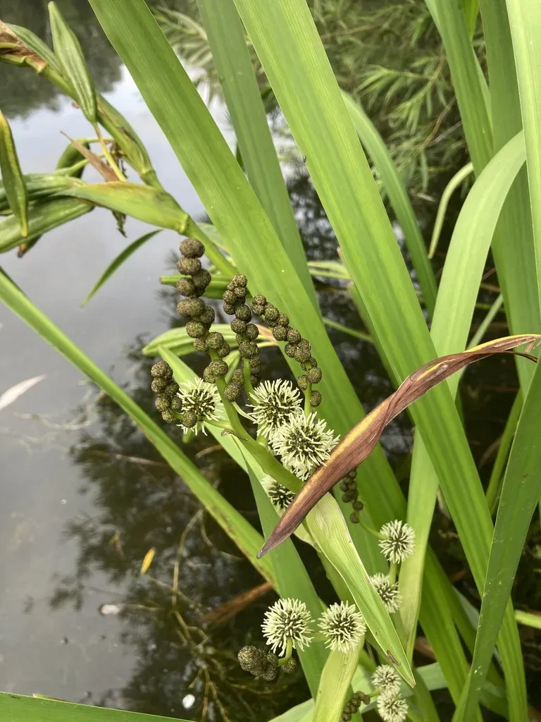Sparganium erectum is a perennial aquatic plant species known for its tall, dense stands and distinctive bur-like fruits.