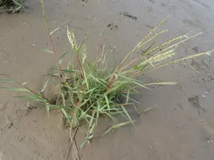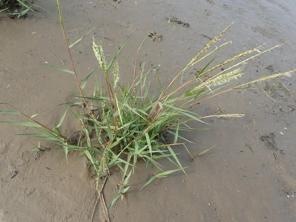 Sporobolus anglicus is a robust perennial grass known for its role in saltmarsh ecosystems and its vigorous colonization of tidal mudflats.