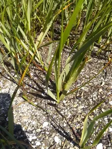 Sporobolus foliosus is a perennial grass native to California and Mexico, growing from short rhizomes with thick, fleshy stems up to 1.5 meters tall.