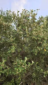 Spyridium globulosum, commonly known as Basket Bush, is an erect shrub native to Western Australia, notable for its white flowers and soft rounded leaves.