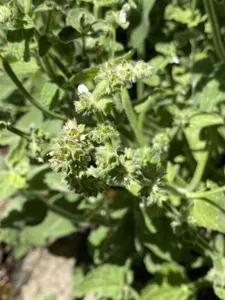 Stachys albens is a perennial herb of the mint family, endemic to California, known for its fuzzy leaves and small white flowers with purple veins.