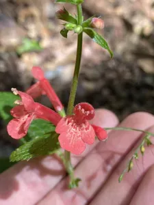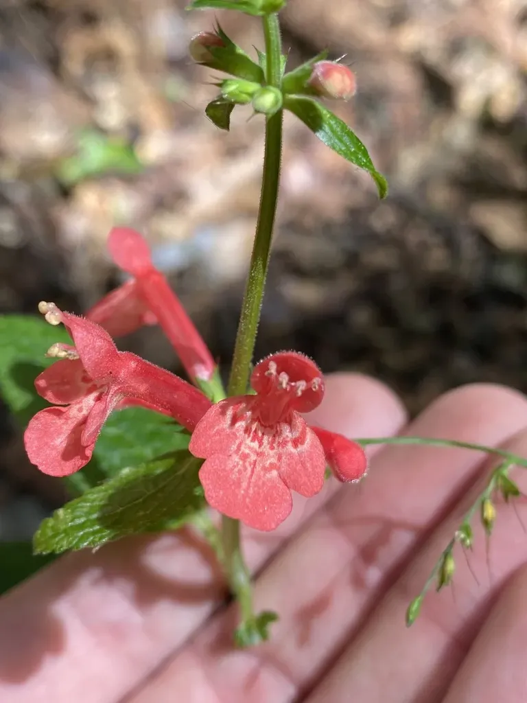 Scarlet Hedge Nettle (Stachys Coccinea) is a perennial herb in the Lamiaceae family with easy care difficulty. It requires moderate watering and full sun or partial shade light in USDA hardiness zones 7-10. This plant is safe for cats and dogs.