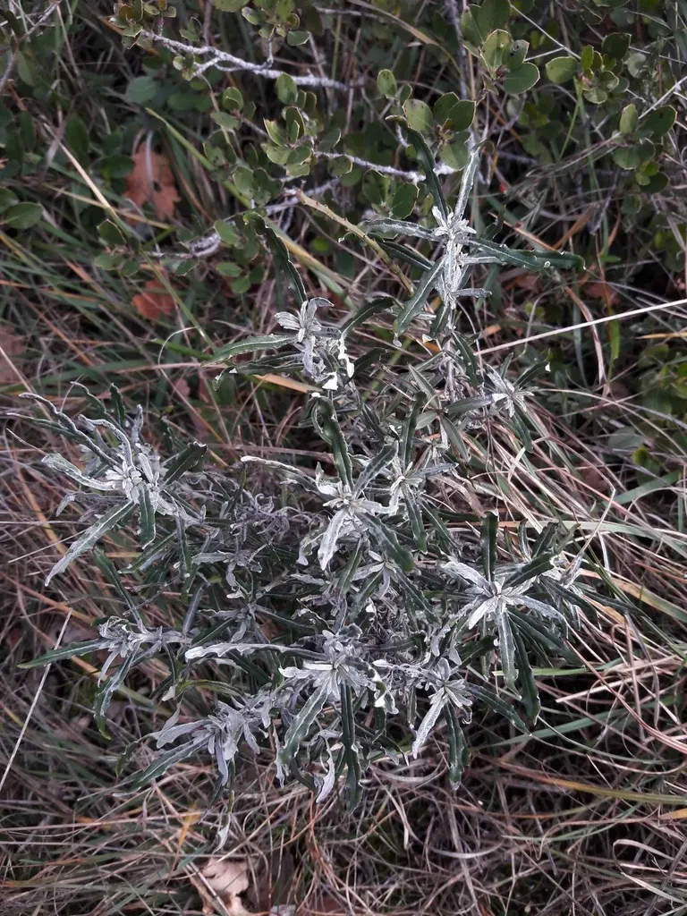Thistle (Staehelina Dubia) is a perennial shrub in the Asteraceae family with moderate care difficulty. It requires moderate watering and full sun or partial shade light in USDA hardiness zones 8-10. This plant is safe for cats and dogs.