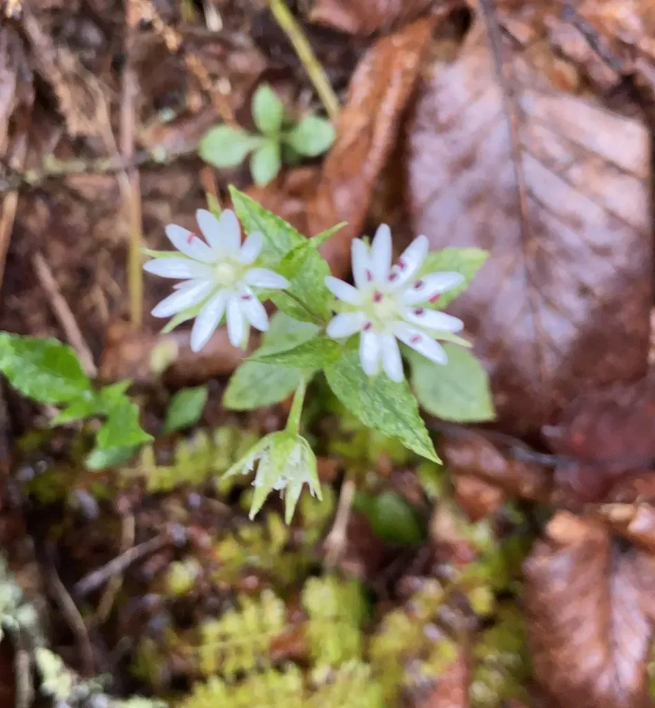 A perennial herb native to the eastern United States, especially the Appalachian region, known for its delicate white star-shaped flowers and preference for rocky woodlands.