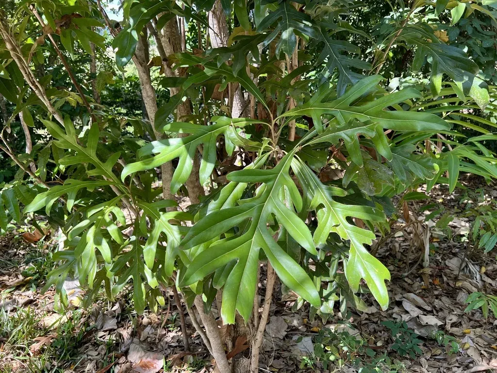 An evergreen rainforest tree known for its distinctive wheel-shaped red flowers and sinuous leaf margins.