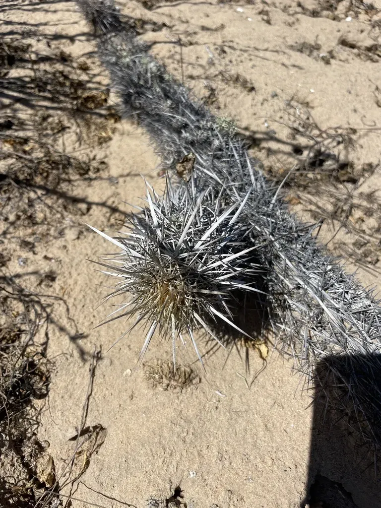 Stenocereus eruca, commonly known as the creeping devil, is a unique cactus species characterized by its creeping, snake-like growth habit and spiny stems.