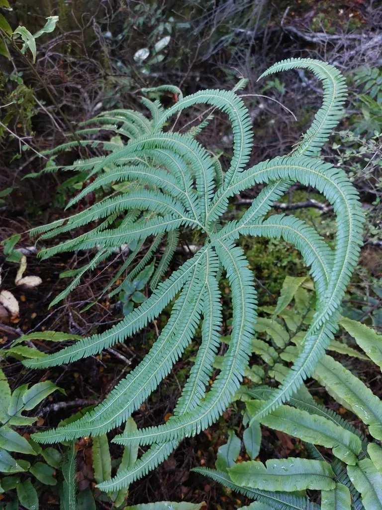 A New Zealand endemic fern known for its distinctive drooping fronds that resemble an umbrella.