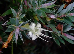 Styphelia adscendens is a prostrate or low-lying evergreen shrub native to southeastern Australia, characterized by lance-shaped leaves and cream to pale yellowish-green or reddish flowers.