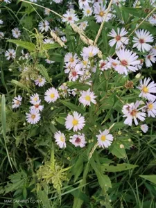Common Michaelmas-daisy (Symphyotrichum × Salignum) is a plant with moderate care difficulty. It requires moderate watering and moderate light.