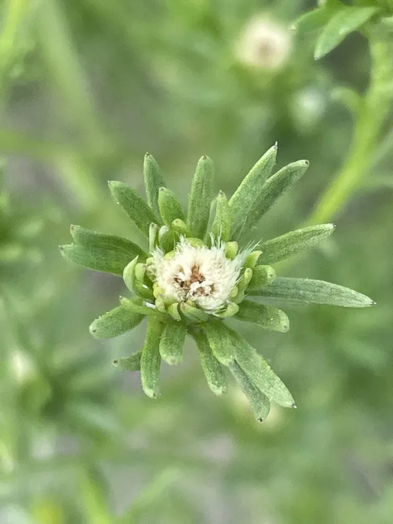 Symphyotrichum ciliatum is an annual herbaceous plant native to North America and eastern Eurasia, known for its small, rayless flower heads.