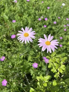 Tanacetum coccineum, commonly known as Painted Daisy, is a perennial herbaceous plant known for its bright, daisy-like flowers in shades of pink, red, purple, or white.