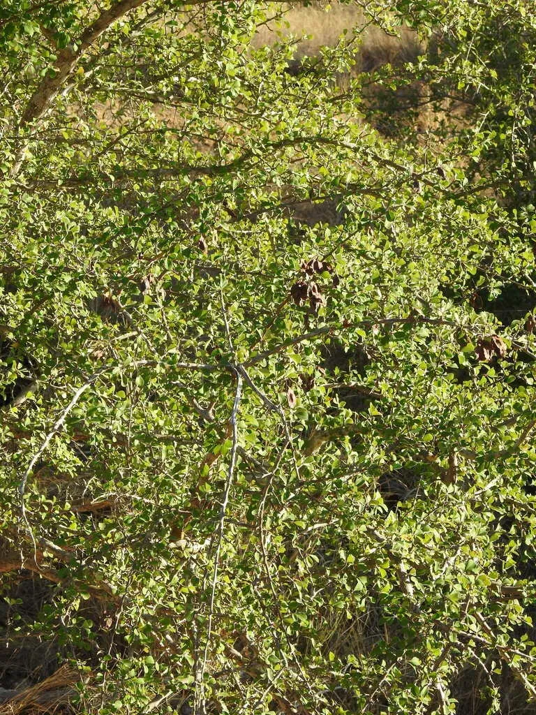 Terminalia prunioides is a small, deciduous African tree known for its purple pods and multi-stemmed, drooping habit.