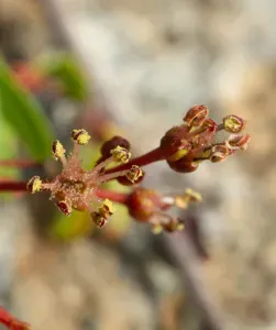 Parry's Tetracoccus (Tetracoccus Dioicus) is a perennial shrub in the Picrodendraceae family with moderate care difficulty. It requires low, drought-tolerant watering and full sun or partial shade light in USDA hardiness zones 8-11. This plant is safe for cats and dogs.
