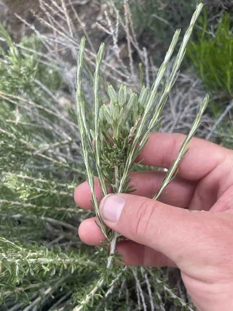 A bushy, erect shrub native to the western United States, notable for its small, narrow leaves and woolly stems.