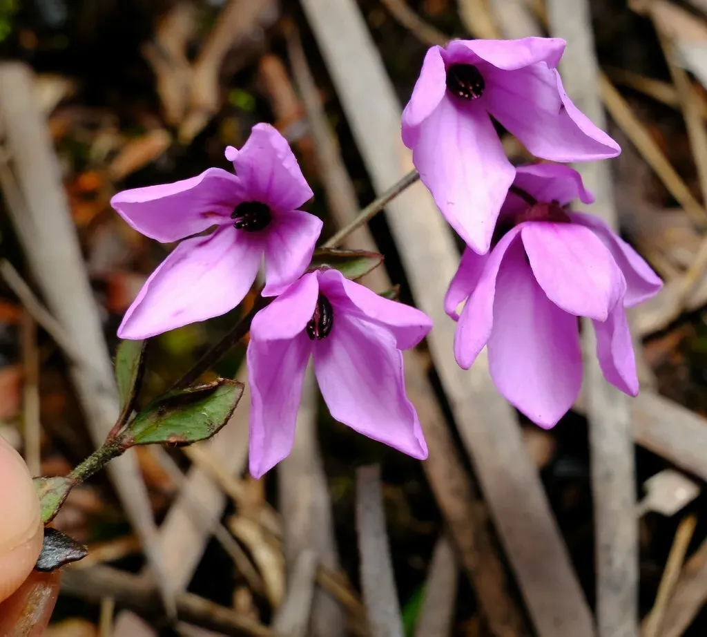 Tetratheca ciliata is a small, slender shrub endemic to southern Australia, known for its deep lilac-pink flowers with four petals and glandular hairs on flower stalks.