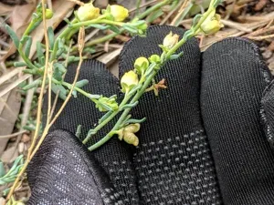 Texas Desert-rue (Thamnosma Texana) is a perennial shrub in the Rutaceae family with easy care difficulty. It requires drought-tolerant watering and full sun light in USDA hardiness zones 8-11. This plant is toxic to cats and dogs — keep it out of reach of pets.