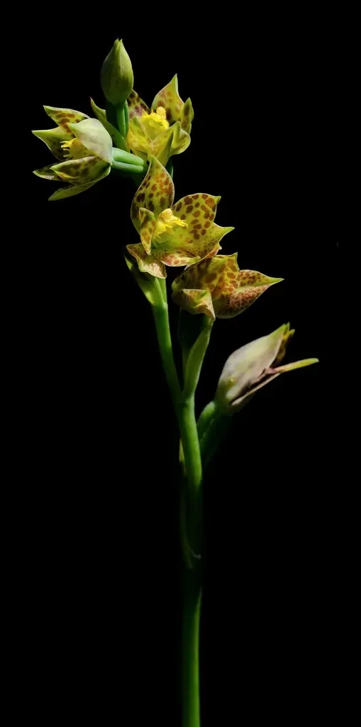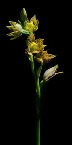Thelymitra benthamiana is a terrestrial orchid endemic to Australia, known for its pale yellow or yellowish-green flowers with brown blotches.