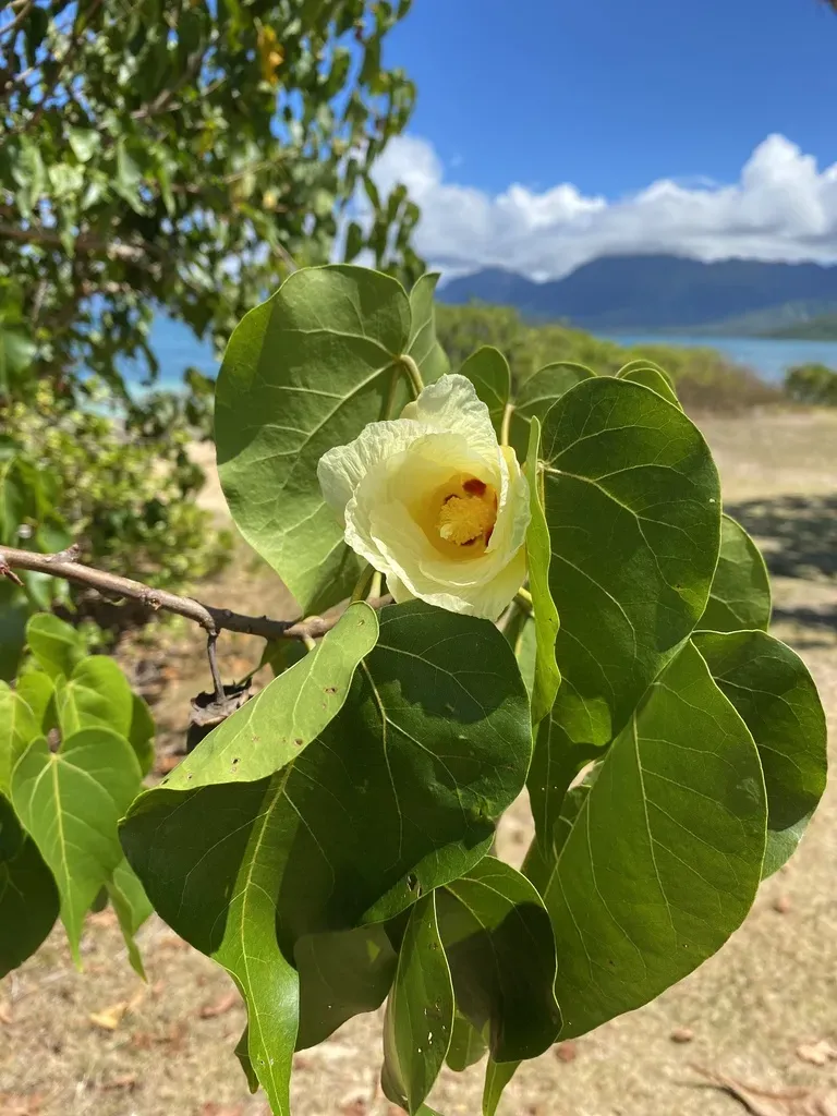 Thespesia populnea is a fast-growing, evergreen shrub or small tree known for its broad crown and attractive yellow flowers with maroon centers.