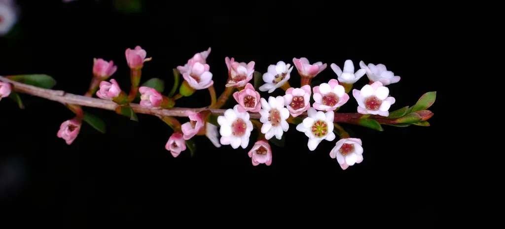 Thryptomene calycina is a small to medium, bushy shrub endemic to Australia, known for its pure white flowers with a dark eye and a long flowering period.