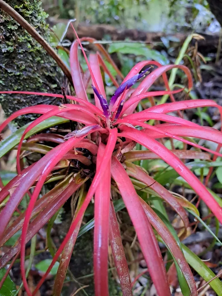 Tillandsia brachycaulos is an epiphytic air plant known for its vibrant green leaves that blush to purple and red under ample light.