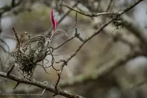 Tillandsia caput-medusae is a striking air plant known for its unique twisted, tentacle-like leaves resembling Medusa's snakes. It is native to Central America and Mexico and is popular as an ornamental plant.