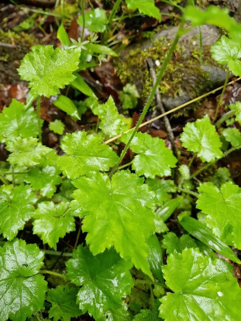 Tolmiea menziesii is a native evergreen perennial herb from the west coast of North America, known for its unique piggyback-like plantlets growing on mature leaves.