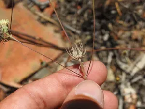 Tolpis umbellata is a somewhat pubescent perennial or biennial plant belonging to the Asteraceae family, characterized by branched stems and yellow flowers.