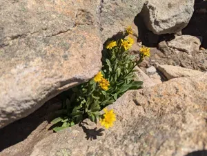 Lyall's Goldenweed (Tonestus Lyallii) is a perennial herb in the Asteraceae family with moderate care difficulty. It requires low watering and full sun or partial shade light in USDA hardiness zones 4-8. This plant is safe for cats and dogs.