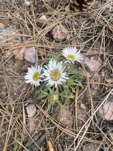 Townsendia grandiflora is a biennial or short-lived perennial herbaceous plant with narrow, gray-green, pubescent leaves and a large solitary flower head.